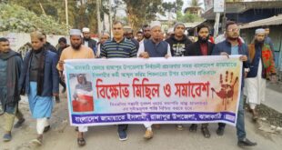 বুলবুল আহমেদ, রাজাপুর : ঝালকাঠি জেলার রাজাপুর উপজেলায় বাংলাদেশ জামায়াতে ইসলামীর কর্মী করিম সিকদার এর উপর যুবদল নেতার হামলার প্রতিবাদে বিক্ষোভ মিছিল ও সমাবেশ অনুষ্ঠিত হয়েছে। বুধবার ২৮ জানুয়ারি বিকাল ৪.৩০ মিনিটে উপজেলা মডেল মসজিদ এর সামনে থেকে বিক্ষোভ মিছিলটি শুরু হয়ে শহরের প্রধান প্রধান সড়ক প্রদক্ষিণ শেষে উপজেলা নির্বাহী অফিসার এর কার্যালয়ের সামনে সংক্ষিপ্ত সমাবেশ এর মাধ্যমে শেষ হয়। …