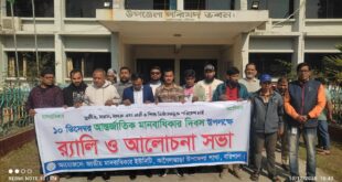 আগৈলঝাড়া প্রতিনিধি বরিশালের আগৈলঝাড়া উপজেলায় আন্তর্জাতিক মানবাধিকার দিবস–২০২৫ উপলক্ষে জাতীয় মানবাধিকার ইউনিটি আগৈলঝাড়া উপজেলা কমিটির উদ্যোগে বর্ণাঢ্য র্যালি ও আলোচনা সভা অনুষ্ঠিত হয়েছে। বুধবার সকাল ১১ টায় উপজেলা পরিষদ চত্বরে থেকে একটি বর্ণনা তৈরি বের হয়ে প্রধান প্রধান সড়ক প্রদক্ষিণ করে আলোচনা সভায় মিলিত হয়। এ বছরের মানবাধিকার দিবসের প্রতিপাদ্য, “মানবাধিকার: আমাদের প্রতিদিনের অপরিহার্য বিষয়” অনুষ্ঠানে সভাপতিত্ব করেন জাতীয় মানবাধিকার …
