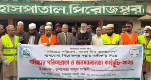 পিরোজপুর প্রতিনিধি আজ (বুধবার) সকাল ১০টায় পিরোজপুর সদর হাসপাতালে বাংলাদেশ জামায়াতে ইসলামী পিরোজপুর পৌরসভার উদ্যোগে মহান বিজয় দিবস উপলক্ষে পক্ষকাল ব্যাপী পরিষ্কার পরিচ্ছন্নতা ও জনসচেতনতা কর্মসূচির উদ্ধোধনী অনুষ্ঠানে পিরোজপুর-১ আসনে জামায়াত মনোনিত এমপি প্রার্থী, সাবেক উপজেলা চেয়ারম্যান মাসুদ সাঈদী বলেছেন,“স্বৈরাচার হাসিনার শাসনামলে দক্ষিণাঞ্চলের সবচেয়ে দুর্নীতিগ্রস্ত জেলাগুলোর একটি ছিল পিরোজপুর। প্রশাসন, আইনশৃঙ্খলা রক্ষা বাহিনী, সরকারি দপ্তরসহ সর্বত্র গড়ে উঠেছিল একটি অদৃশ্য …