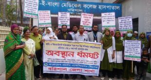 নিজস্ব প্রতিবেদক বরিশাল শের-ই-বাংলা মেডিকেল কলেজ হাসপাতালে ৮ দফা দাবিতে ঘণ্টাব্যাপী অবস্থান কর্মসূচি পালন করেছেন নার্সরা। বুধবার সকাল ১১টায় হাসপাতাল পরিচালকের কার্যালয়ের সামনে এই কর্মসূচি অনুষ্ঠিত হয়। অবস্থান কর্মসূচিতে নার্সরা জানান, স্বতন্ত্র নার্সিং ও মিডওয়াইফারি অধিদপ্তরকে অন্য কোনো অধিদপ্তরের সঙ্গে একীভূত করার ‘অপচেষ্টা’ বন্ধ করতে হবে এবং জাতীয় নার্সিং কমিশন গঠন করতে হবে। একই সঙ্গে নার্সিং ও মিডওয়াইফারি অধিদপ্তর কর্তৃক …