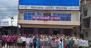 নিজস্ব প্রতিবেদক।। ঢাকার উত্তরায় মাইলস্টোন স্কুল অ্যান্ড কলেজে ঘটে যাওয়া মর্মান্তিক বিমান দুর্ঘটনায় শহীদ শিশু-কিশোরদের রুহের মাগফিরাত ও আহতদের দ্রুত সুস্থতা কামনায় দোয়া ও শোক ব্যানার হাতে অবস্থান কর্মসূচী পালন করে জমজম আইএইচটি ম্যাটস এন্ড নার্সিং কলেজ বরিশাল এর শিক্ষার্থীরা। প্রতিষ্ঠানটির কর্মকর্তা-কর্মচারী, শিক্ষক-শিক্ষিকা, শিক্ষার্থী ও অভিভাবকদের অংশগ্রহণে আয়োজিত এ দোয়া অনুষ্ঠানে সকল শহীদদের বিদেহী আত্মার মাগফিরাত এবং আহতদের দ্রুত আরোগ্য …