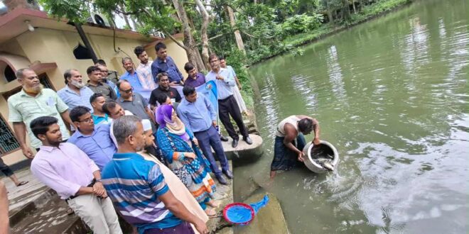 বরিশালের বানারীপাড়ায় দেশীয় প্রজাতির মাছ এবং শামুক সংরক্ষণ ও উন্নয়ন প্রকল্প অর্থায়নে ও মৎস্য দপ্তরের বাস্তবায়নে মৎস্য সম্পদ বৃদ্ধির লক্ষ্যে অভয়আশ্রম, উন্মুক্ত জলাশয় ও আবাসন পুকুরে মাছের পোনা অবমুক্ত করা হয়েছে।