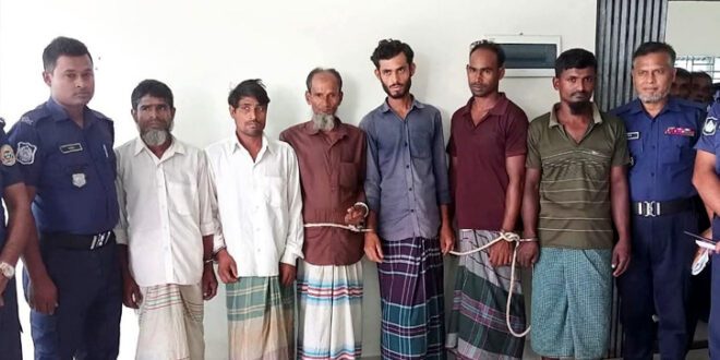 গ্রেফতার ব্যক্তিরা হলেন- বজায়শুলী গ্রামের করিম মল্লিক (৬০), তার ছেলে রফিক মল্লিক (২৮), শফিক মল্লিক (২২), ইয়াসিন মল্লিক (১৮), ইউনুছ সরদারের ছেলে রাজ্জাক সরদার (৪৫), নজরুল সরদার (২৫), মুলাদী পৌরসভার চরডিগ্রি গ্রামের ৮নম্বর ওয়ার্ডের মৃত ইসমাইল খানের ছেলে আ. করিম খান (৪০)।