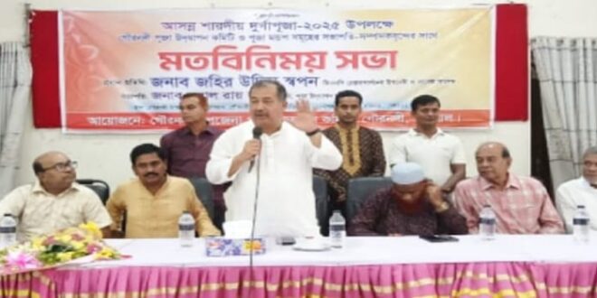 আসছে দুর্গাপূজার উৎসবকে ঘিরে ষড়যন্ত্রকারীরা নানা ষড়যন্ত্র করতে পারে এজন্য বিএনপি ছাত্রদল যুবদলকে সর্বদা সতর্ক থাকতে হবে।ষড়যন্ত্রকারীরা যেন কোন অঘটন ঘটিয়ে বিএনপির কাঁধে দোষ চাপাতে না পারে সেজন্য আপনাদেরকে সর্বদা সতর্ক থাকতে হবে।শহীদ জিয়ার স্বপ্নেরস্বনির্ভর বাংলাদেশ গড়ে তোলাই আমাদের একমাত্র লক্ষ। যেখানে সকল ধর্মসম্প্রদায়ের লোকজনসুখে-শান্তিতে বসবাস করবে।রোববার দুপুরে আসন্ন শারদীয় দুর্গাপূজা-২০২৫উপলক্ষে বরিশালের গৌরনদী উপজেলা পূজা উদযাপন কমিটিওমন্ডপসমূহের সভাপতি-সম্পদকবৃন্দের সাথে মতবিনিময় সভায় প্রধান অতিথির বক্তৃতাকালে তিনি এ কথা বলেন।