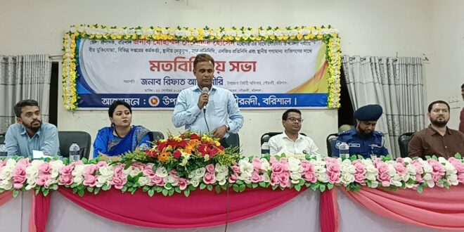 বরিশালের গৌরনদীতে উপজেলা প্রশাসনের আয়োজনে জেলা প্রশাসক মো. দেলোয়ার হোসেনের সঙ্গে এক মতবিনিময় সভা অনুষ্ঠিত হয়েছে। রবিবার বিকেল ৪টায় উপজেলা পরিষদ মিলনায়তনে আয়োজিত এ সভায় উপজেলা পর্যায়ের বীর মুক্তিযোদ্ধা, সরকারি কর্মকর্তা, রাজনৈতিক ও সামাজিক সংগঠনের নেতা, সাংবাদিক, এনজিও প্রতিনিধি, ছাত্র প্রতিনিধি এবং স্থানীয় গণ্যমান্য ব্যক্তিবর্গ অংশ নেন।