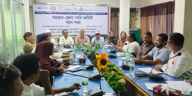 অদ্য ২৪ সেপ্টেম্বর,২০২৫ তারিখ রোজ বুধবার,সকাল ১১ ঘটিকার সময় ফিসারফোক ইন্টিগ্রেশন ফর সাসটেইনেবল হ্যাবিট্যান্ট এন্ড ন্যাচারাল ইকোসিস্টেম ট্রান্সফরমেশন ( ফিসনেট) প্রকল্পের অধীনে বেসরকারি উন্নয়ন সংস্থা সেন্টার ফর ন্যাচারাল রিসোর্স স্ট্যাডিস (সিএন আর এস) এর আয়োজনে বরগুনা প্রেসক্লাব মিলনায়তনে বরগুনা জেলা পানি কমিটি গঠন সভা অনুষ্ঠিত হয়। সভায় সভাপতিত্ব করেন সিএন আর এস এর প্রকল্প ব্যবস্হাপক সুবোধ বিশ্বাস।