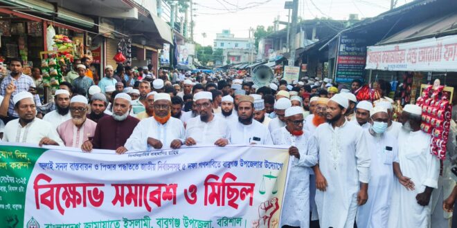জুলাই সনদ বাস্তবায়ন ও পিআর পদ্ধতিতে জাতীয় নির্বাচন সহ পাঁচ দফা গণদাবির অংশ হিসেবে দেশব্যাপী কেন্দ্র ঘোষিত কর্মসূচির অংশ হিসেবে বরিশালের বাবুগঞ্জ উপজেলায় বিক্ষোভ সমাবেশ ও মিছিল করেছে বাংলাদেশ জামায়াতে ইসলামী ও ইসলামী আন্দোলন বাংলাদেশ।