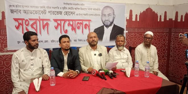 রবিবার (২৮সেপ্টেম্বর) বেলা ১টায় চরফ্যাশন উপজেলার শশীভূষণে বেগম রহিমা ইসলাম কলেজে অনুষ্ঠিত কলেজ গভর্নিং বডির সভায় দুষ্কৃতিকারীরা ধারালো অস্ত্র ও লাঠিসোঁটা নিয়ে এই হামলা চালায় বলে এ্যাডভোকেট পারভেজ হোসেন গতকাল রবিবার সন্ধ্যায় চরফ্যাশন উপজেলা সদরের একটি হোটেলে আয়োজিত সংবাদ সম্মেলনে অভিযোগ করেছেন।