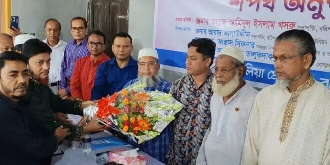 ঝালকাঠির কাঠালিয়া প্রেসক্লাবের নবনির্বাচিত সদস্যদের শপথ গ্রহণ অনুষ্ঠিত হয়েছে। বৃহস্পতিবার (২ অক্টোবর) দুপুরে কাঠালিয়া প্রেসক্লাব মিলনায়তনে এ শপথ অনুষ্ঠিত হয়। অনুষ্ঠানের প্রধান অতিথি বরিশাল প্রেসক্লাবের সভাপতি অধ্যক্ষ আমিনুল ইসলাম খসরু নবনির্বাচিত সদস্যদের শপথ পাঠ করান। এ সময় বিশেষ অতিথি হিসেবে উপস্থিত ছিলেন বরিশাল জেলা সাংবাদিক ইউনিয়নের সভাপতি আযাদ আলাউদ্দীন, ঝালকাঠি প্রেসক্লাবের সাধারণ সম্পাদক ও ঝালকাঠি জেলা জর্জ কোর্টের অতিরিক্ত পিপি মো. আক্কাস সিকদার এবং ঝালকাঠি প্রেসক্লাবের সহ-সভাপতি মো. আল আমিন তালুকদার। শপথ গ্রহণ অনুষ্ঠানে রাজনৈতিক ব্যক্তিবর্গ, মুক্তিযোদ্ধা, বিভিন্ন ইউনিয়নের ভারপ্রাপ্ত চেয়ারম্যান, সুধীজনসহ কাঠালিয়া প্রেসক্লাবের নবনির্বাচিত সভাপতি, সাধারণ সম্পাদক এবং কার্যনির্বাহী পরিষদের অন্যান্য সদস্যরা উপস্থিত ছিলেন।