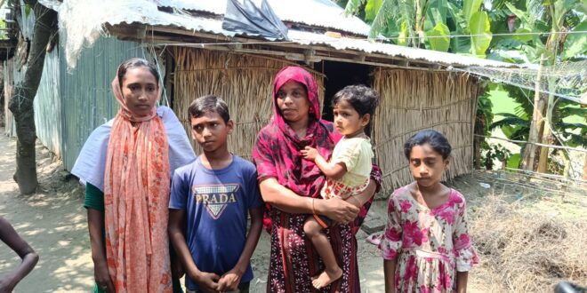 হিজলা উপজেলার ধুলখোলা ইউনিয়নের বাথুয়া গ্রামের মারুফা বেগম চার সন্তান নিয়ে এভাবেই অভাব অনটনে দিন কাটাচ্ছেন। পান না কোনো সরকারি সাহায্য সহযোগিতা। একই গ্রামের নুরুল ইসলাম মাতাব্বর’র ছেলে মোঃ রাসেল মাতাব্বর’র সাথে চৌদ্দ বছর আগে বিয়ে হয় মারুফা বেগমের।