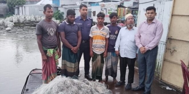 মঙ্গলবার ভোর থেকে বিকেল পর্যন্ত উপজেলার তেঁতুলিয়া নদীর বিভিন্নস্থানে অভিযান চালিয়ে তাদের আটক করা হয়। এ সময় জব্দ করা হয় ৫হাজার মিটার অবৈধ জাল এবং ইলিশসহ বিভিন্ন প্রজাতির ১৫কেজি মাছ।