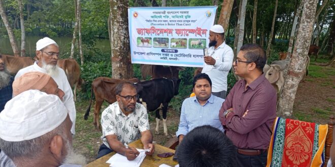 ঝালকাঠির নলছিটিতে গবাদিপশুর তড়কা রোগ প্রতিরোধে বিনামূল্যে ভ্যাকসিনেশন ক্যাম্পেইন অনুষ্ঠিত হয়েছে।