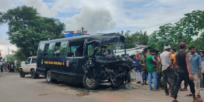 স্থানীয় প্রত্যক্ষদর্শীরা জানান, দুর্ঘটনাস্থলটি একটি ব্যস্ত বাসস্ট্যান্ড এলাকা হওয়ায় রাস্তার পাশে অটোরিকশা ও রিকশা দাঁড়ানো ছিল। র্যাবের মিনিবাসটি গতি কমিয়ে এগোলেও বিপরীত দিক থেকে আসা ধানসিঁড়ি বাসটি অতিরিক্ত গতিতে এসে নিয়ন্ত্রণ হারিয়ে সজোরে ধাক্কা মারে। এতে র্যাবের গাড়ির সামনের অংশ সম্পূর্ণ বিধ্বস্ত হয়ে যায়।