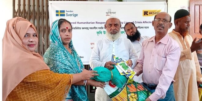 পটুয়াখালীর মহিপুরে বেসরকারি উন্নয়ন সংস্থা সুশীলন এর উদ্যোগে ও আইআরসি এবং সিডা-এর সহযোগিতায় অসহায় ও নিম্নআয়ের নারীদের মাঝে জলবায়ু সহনশীল সবজি উৎপাদনের লক্ষ্যে কৃষি উপকরণ বিতরণ করা হয়েছে।