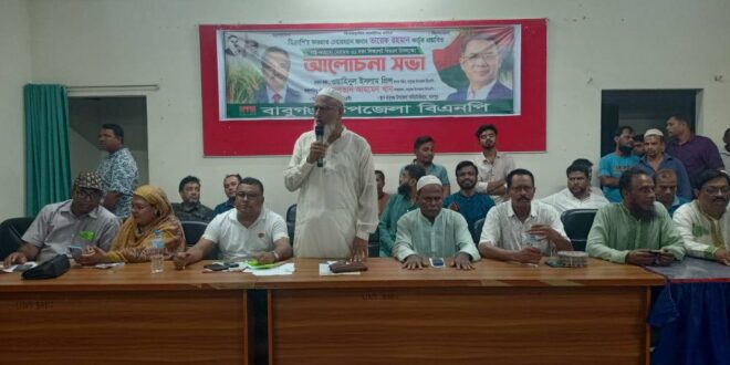 আলোচনা সভায় বাবুগঞ্জ উপজেলা বিএনপির আহবায়ক সুলতান আহমদ খান’র সভাপতিত্বে