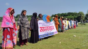মানববন্ধনে ভুক্তভোগীদের পক্ষ থেকে বক্তব্য রাখেন মো. হারুন মৃধা, ইব্রাহিম হোসেন, মিরাজ হোসেন, আসমা বেগম ও হাসিনা বেগম।