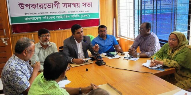 বুধবার দুপুরে কলাপাড়া উপজেলা পরিষদ সম্মেলন কক্ষে বাংলাদেশ পরিবেশ আইনবিদ সমিতি (বেলা) আয়োজিত কলাপাড়ায় “ চিংগরিয়া খালের বিরাজমান পরিস্থিতি” বিষয়ক সমন্বয় সভায় প্রধান অতিথির বক্তব্যে উপজেলা নির্বাহী অফিসার কাউছার হামিদ আরো বলেন, ‘কলাপাড়া শহরকে বাস উপযোগি রাখতে খালে কোন ধরনের বর্জ্য ফেলা যাবে না।’