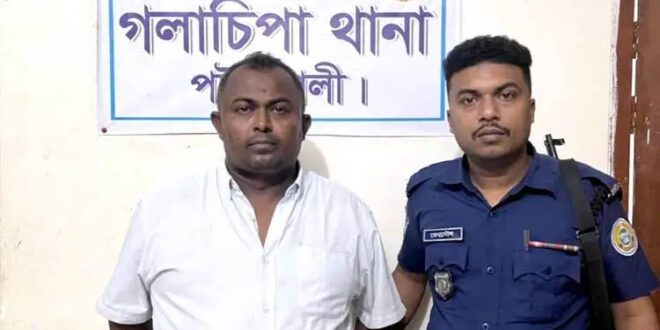 অনলাইন ডেস্ক : পটুয়াখালীর গলাচিপা উপজেলার চিকনিকান্দি ইউনিয়নের মাঝগ্রামে হিন্দু পরিবারের কাছে চাঁদা দাবি ও ভয়ভীতি প্রদর্শনের অভিযোগে মেহেদী হাসান মুকুল প্যাদা নামের এক যুবদলকর্মীকে গ্রেফতার করেছে পুলিশ। তিনি চিকনিকান্দি ইউনিয়ন যুবদলের সক্রিয় কর্মী বলে জানা গেছে।