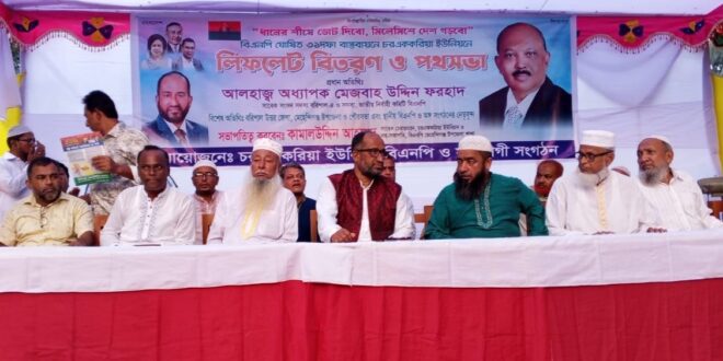 শনিবার বিকেলে এই লিফলেট বিতরন ও দোয়া মোনাজাতে প্রধান অতিথি হিসাবে সাবেক এমপি মেজবাহ উদ্দিন ফরহাদের পক্ষে উপস্থিত ছিলেন বরিশাল উত্তর জেলা বিএনপির সদস্য ও মেহেন্দিগঞ্জ পৌর বিএনপির সাবেক সভাপতি জিয়াউদ্দিন সুজন। বাদ আসর দাদপুর তেমুহনি মাধ্যমিক বিদ্যালয় মাঠে অনুষ্ঠিত চরএককরিয়া ইউনিয়নের সাবেক চেয়ারম্যান ও বিএনপি মেহেন্দিগঞ্জ উপজেলা শাখার সাবেক সহ-সভাপতি কামাল উদ্দিন আহাম্মেদের সভাপতিত্বে সংক্ষিপ্ত আলোচনা অনুষ্ঠিত হয়।