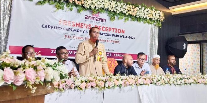 নগরীর প্রথম বেসরকারি নার্সিং শিক্ষা প্রতিষ্ঠান ‘জমজম নার্সিং কলেজ’-এ জমকালো আয়োজনের মধ্য দিয়ে চলতি শিক্ষাবর্ষের নতুন শিক্ষার্থীদের বরণ এবং বিগত সেশনের শিক্ষার্থীদের বিদায় জানানো হয়েছে। ২৬অক্টোবর (রবিবার) বরিশাল নগরীর প্যাভিলিয়ন কনভেনশন হলে এই বর্ণাঢ্য অনুষ্ঠান সম্পন্ন হয়। কলেজটির প্রবীণ শিক্ষার্থীরাই এ অনুষ্ঠানের আয়োজন করেন।