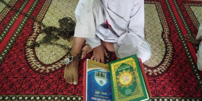 পিরোজপুরের ভাণ্ডারিয়ায় কওমি মাদরাসার নাজেরা শাখার ছয় বছরের আবাসিক ছাত্র ওসমান মল্লিকের (ইয়াসিন) পায়ে শিকল বেঁধে পাঠদান করা হচ্ছিল। খবর পেয়ে মঙ্গলবার দুপুরে স্থানীয় গণমাধ্যমকর্মীরা ঘটনাস্থল গিয়ে সত্যতা নিশ্চিত করেন।