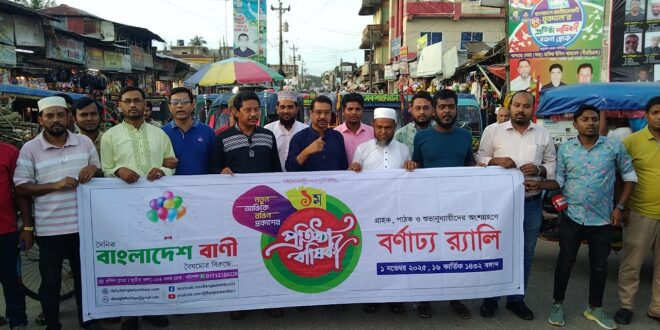 ভোলার লালমোহনে বরিশাল থেকে প্রকাশিত জনপ্রিয় পত্রিকা দৈনিক বাংলাদেশ বাণী‘র প্রথম প্রতিষ্ঠা বার্ষিকী পালিত হয়েছে। শনিবার (১ নভেম্বর ২০২৫) আসর বাদ লালমোহন প্রেসক্লাবের সামনে থেকে এ উপলক্ষ্যে বর্ণাঢ্য র্যালি বের হয়ে পৌরশহরের প্রধান প্রধান সড়ক প্রদক্ষিণ করে একই স্থানে এসে শেষ হয়। এরপর প্রেসক্লাবের হলরুমে আলোচনা সভা অনুষ্ঠিত হয়।