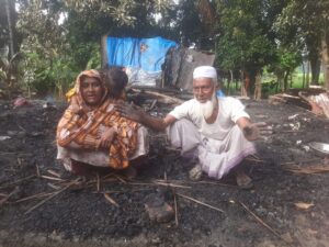 পার্শ্ববর্তী পুড়ে যাওয়া আরেক ঘরের মালিক বয়োবৃদ্ধ মোস্তফা বেপারী বলেন, গভীর রাতে ঘুমিয়ে ছিলাম ঘরের বাহিরে ডাক চিৎকার শুনে উঠে দেখি, চার পাশে দাউ দাউ করে আগুন জ্বলছে ও বিকট শব্দ হচ্ছে। কোনভাবে প্রাণ নিয়ে ঘর থেকে বের হয়েছি। চোখের সামনে মালামালসহ পুড়ো ঘর পুড়ে ছাই হয়ে যায়। শরীরে পরিধেয় একটি গেঞ্জি ও লুঙ্গি ছাড়া আর কিছু অবশিষ্ট নেই।