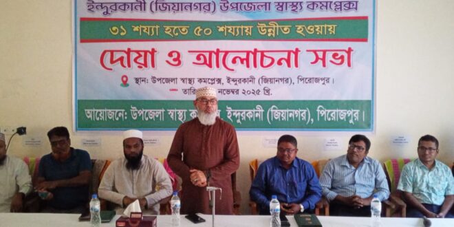পিরোজপুরের ইন্দুরকানীতে উপজেলা স্বাস্থ্য কমপ্লেক্স ৩১শয্যা থেকে ৫০শয্যায় উন্নীত হওয়ায় এক দোয়া ও আলোচনা সভা অনুষ্ঠিত হয়েছে।