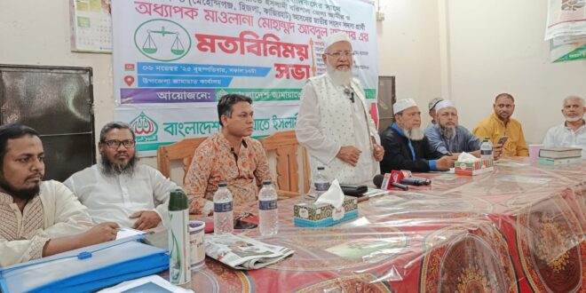 বৃহস্পতিবার (৬নভেম্বর) সকাল ১০টায় উপজেলা জামায়াত কার্যালয়ে অনুষ্ঠিত মতবিনিময় সভায় সভাপতিত্ব করেন জামায়াতের উপজেলা আমীর অধ্যাপক নুরুল আমিন। সঞ্চালনা করেন উপজেলা সেক্রেটারী সৈয়দ গুলজার আলম।