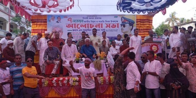 বরিশালের বানারীপাড়ায় জাতীয় বিপ্লব ও সংহতি দিবস উপলক্ষে আলোচনা সভা অনুষ্ঠিত হয়েছে।৬ নভেম্বর বিকাল তিনটায় বানারীপাড়া উপজেলা ও পৌর বিএনপি বানারীপাড়া বালিকা মাধ্যমিক বিদ্যালয় মাঠে এ আলোচনা সভার আয়োজন করে।আলোচনা সভায় প্রধান অতিথি হিসেবে উপস্থিত থেকে বক্তব্য রাখেন কেন্দ্রীয় বিএনপি’র স্থায়ী কমিটির সদস্য ও বরিশাল- ২( বানারীপাড়া -উজিরপুর) আসনের বিএনপি মনোনীত প্রার্থী জননেতা সরদার সরফুদ্দিন আহমেদ সান্টু।