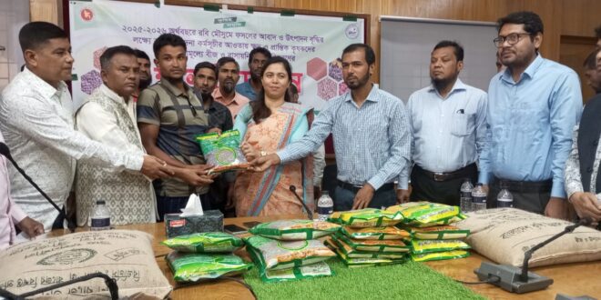 ২০২৫-২৬ অর্থ বছরের রবি মৌসুমের ফসলের আবাদ ও উৎপাদন বৃদ্ধির লক্ষ্যে কৃষি প্রণোদনা কর্মসূচির আওতায় ক্ষুদ্র ও প্রান্তিক কৃষকদের মাঝে বিনামূল্যে বীজ ও রাসায়নিক সার বিতরণের শুভ উদ্বোধন করা করা হয়েছে।