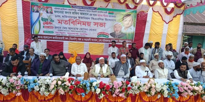 বৃহস্পতিবার বিকাল পাঁচটায় হরিনাথপুর ইউনিয়ন ভূমি অফিস মাঠের মতবিনিময় সভা জনসভায় পরিনত হয়। হরিনাথপুর ইউনিয়ন বিএনপি’র সাবেক আহ্বায়ক আব্দুল খালেক মাঝির সভাপতিত্বে প্রধান অতিথির বক্তব্যে রাখেন উপজেলা বিএনপির ভারপ্রাপ্ত আহ্বায়ক আলতাফ হোসেন খোকন।
