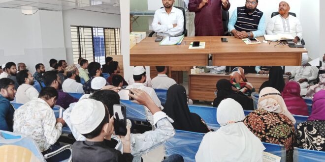 ২য় পর্বের ভর্তি পরীক্ষায় অংশ গ্রহণ করার জন্য শিক্ষার্থীদের আহবান জানান। এসময় উপস্থিত ছিলেন, অত্র মাদ্রাসার কার্যনির্বাহী পরিচালক এম. এ হাসান, আবুল কালামসহ অভিভাবকবৃন্দ।