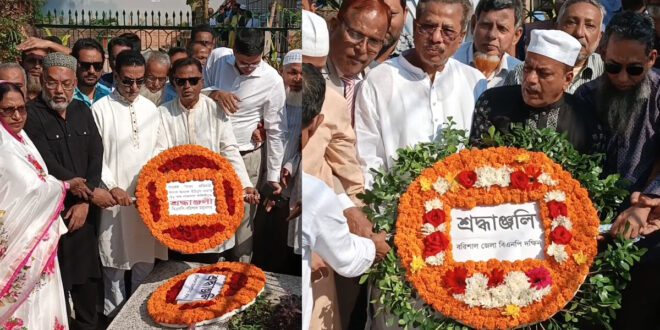 আজ শনিবার (২২ নভেম্বর) সকালে বরিশাল নগরীর ইসলামিয়া কলেজে মরহুমের গোরস্থানে ফুল দিয়ে দিবসটি পালন করে বিএনপি সহ বিভিন্ন শ্রেনী পেশার মানুষ।