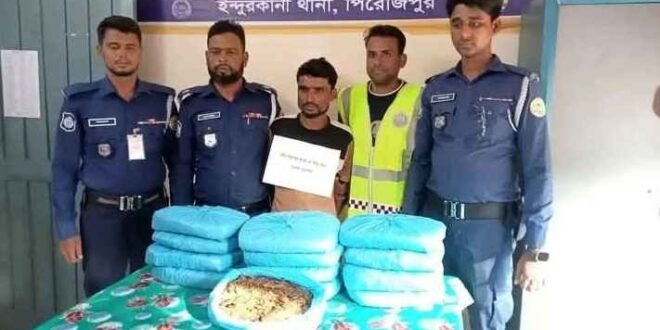 পিরোজপুরের ইন্দুরকানীতে ১৩ কেজি গাঁজাসহ মাহাবুব মোল্লা ওরফে বাবু (৩৮) নামে এক মাদক কারবারিকে গ্রেফতার করা হয়েছে। রোববার (২৩ নভেম্বর) বেলা ২টায় উপজেলার সদর ইউনিয়নের ৩নং ওয়ার্ডের আউরাপোল ও ফায়ার সার্ভিসের মাঝামাঝি সিদ্দিক শেখের বাড়ির সামনে থাকা কবরস্থান থেকে উক্ত ১৩ কেজি গাঁজা উদ্ধার করে এবং বালিপাড়া থেকে মাদকব্যবসায়ীকে গ্রেফতার করা হয়। আটককৃত মাদক ব্যবসায়ী বাগেরহাটের মোড়লগঞ্জ উপজেলার চিংড়াখালী ইউনিয়নের খারইখালী গ্রামের মৃত এাছাহাক মোল্লার ছেলে।