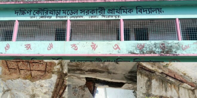ঐতিহ্য ও সাফল্যের দীর্ঘ পথ পেরিয়ে আসা পিরোজপুরের নেছারাবাদ উপজেলার ১০২ নং দক্ষিণ কৌরিখাড়া মডেল সরকারি প্রাথমিক বিদ্যালয়টি বর্তমানে এক চরম সঙ্কটের মুখে। ১৯৪৪ খ্রীষ্টাব্দে স্থাপিত এই বিদ্যালয়টির ভবন এখন অত্যন্ত ঝুঁকিপূর্ণ হিসেবে চিহ্নিত।
