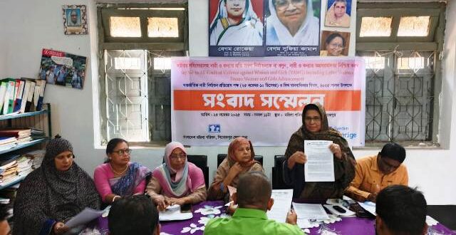 সাইবার সহিংসতাসহ নারী ও কন্যাদের প্রতি সকল প্রকার নির্যাতন প্রতিরোধ এবং তাদের অগ্রসরমানতা নিশ্চিতের আহ্বান জানিয়ে পিরোজপুরে সংবাদ সম্মেলন অনুষ্ঠিত হয়েছে।