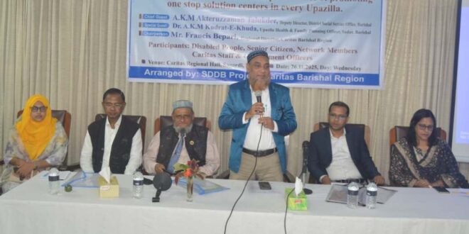 জেলা পর্যায়ে প্রতিটি উপজেলায় ওয়ান-স্টপ সমাধান কেন্দ্র (One Stop Solution Center) প্রতিষ্ঠার সম্ভাবনা যাচাই ও প্রচারণা বিষয়ে বরিশালে দিনব্যাপী জেলা পর্যায়ের এক কনফারেন্স অনুষ্ঠিত হয়েছে। বুধবার (২৬ নভেম্বর) নগরীর সাগরদী এলাকার ক্যারিটাস রিজিওনাল হলে এ কনফারেন্সের আয়োজন করে এসডিডিবি (SDDB) প্রজেক্ট, ক্যারিটাস বরিশাল রিজিয়ন।