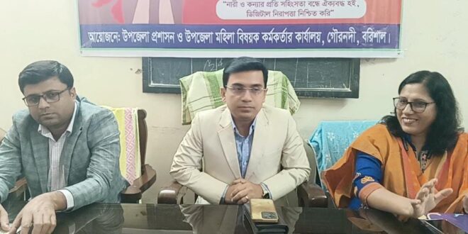 ”নারী ও কন্যার প্রতি সহিংসতা বন্ধে ঐক্যবদ্ধ হই, ডিজিটাল নিরাপত্তা নিশ্চিত করি”—এই প্রতিপাদ্যকে সামনে রেখে বৃহস্পতিবার (২৭নভেম্বর) বরিশালের গৌরনদীতে আন্তর্জাতিক নারী নির্যাতন প্রতিরোধ পক্ষ পালিত হয়েছে।