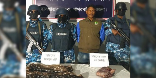 কোস্ট গার্ড জানায়, গোপন সংবাদের ভিত্তিতে বুধবার রাতে ওই এলাকায় অভিযান চালানো হয়। এ সময় কোস্ট গার্ডের উপস্থিতি টের পেয়ে চোরাকারবারিরা পালিয়ে যায়। পরে ঘটনাস্থল থেকে পরিত্যক্ত অবস্থায় ৩ কেজি হরিণের মাংস ও দুটি চামড়া জব্দ করা হয়। কোস্ট গার্ডের মিডিয়া কর্মকর্তা লেফটেন্যান্ট আবুল কাশেম বিষয়টি নিশ্চিত করেছেন।