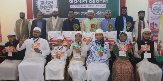 অমান সিম সাওতুল কুরআন–২০২৫ রিয়েলিটি শো (সিজন–১১) এর বরিশাল বিভাগের অডিশন শুক্রবার (২৮ নভেম্বর) বরিশাল প্রেসক্লাবের হলরুমে অনুষ্ঠিত হয়েছে। সকাল থেকেই প্রতিযোগী ও অভিভাবকদের উপস্থিতিতে মুখর ছিল প্রেসক্লাব প্রাঙ্গণ।