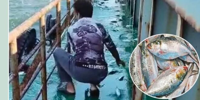পটুয়াখালীর কলাপাড়া পায়রা বন্দরের রাবনাবাদ চ্যানেলের প্রথম বয়া পেরিয়ে প্রায় ৭০কিলোমিটার গভীর সমুদ্রে ঘটে গেল এক বিস্ময়কর ঘটনা। এমভি ক্যাসেল গ্যালাডিয়েটর নামে একটি কয়লাবাহী লাইটার জাহাজের ডেকে মাত্র কয়েক সেকেন্ডের মধ্যে লাফাতে লাফাতে উঠে আসে প্রায় তিন মণ ইলিশ। শনিবার (২৯নভেম্বর) ঘটনাটির ১০সেকেন্ডের একটি ভিডিও সামাজিক যোগাযোগমাধ্যমে ছড়িয়ে পড়ে।