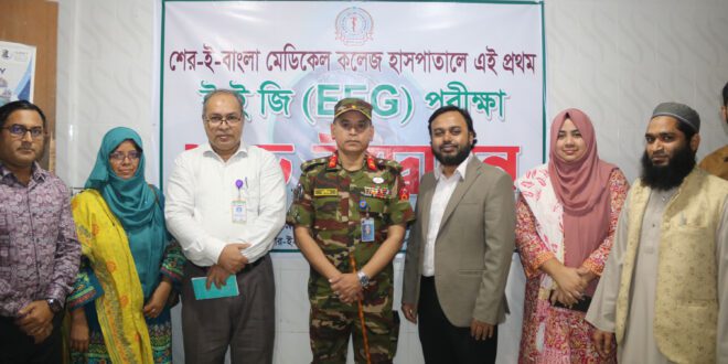 বরিশাল শের-ই-বাংলা মেডিক্যাল কলেজ হাসপাতালে প্রথমবারের মতো চালু হলো ইলেক্ট্রোএনসেফালোগ্রাফি (ইইজি) পরীক্ষা। মৃগী, মস্তিষ্কের টিউমার, মেনিনজাইটিস, এনসেফালাইটিস, স্ট্রোক ও অন্যান্য স্নায়বিক সমস্যায় ভুগছেন এমন রোগীদের জন্য অত্যন্ত গুরুত্বপূর্ণ এই পরীক্ষাটি স্বল্প খরচে হাসপাতালে করা হচ্ছে। আজ সোমবার ১ ডিসেম্বর ইলেক্ট্রোএনসেফালোগ্রাফি (ইইজি) পরীক্ষা-নিরীক্ষার কার্যক্রমের উদ্বোধন করেন হাসপাতালের পরিচালক ব্রিগেডিয়ার জেনারেল ডা. একেএম মশিউল মুনীর।