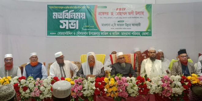 বোরহানউদ্দিন ও দৌলতখান উপজেলার ফাযিল ও কামিল মাদ্রাসার উদ্যোগে “মাদ্রাসা শিক্ষার মানোন্নয়ন ও মুখলিছ আলিম তৈরির কৌশল নির্ধারণ” শীর্ষক এক মতবিনিময় সভা অনুষ্ঠিত হয়েছে। বৃহস্পতিবার (৪ডিসেম্বর) মাগরিবের নামাজের পর বোরহানউদ্দিন কামিল মাদ্রাসা মিলনায়তনে এ সভা অনুষ্ঠিত হয়।