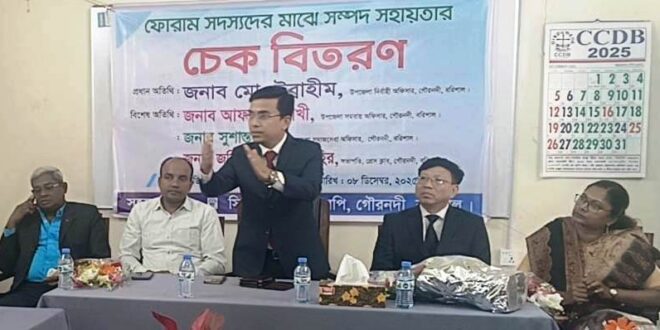 খ্রিষ্টিয়ান কমিশন ফর ডেভেলপমেন্ট ইন বাংলাদেশ (সিসিডিবি) গৌরনদী এরিয়া অফিসের উদ্যোগে জীবন ও জীবিকার মানোন্নয়নের লক্ষ্যে উপকারভোগী সমিতিগুলোর মাঝে অনুদানের চেক হস্তান্তর অনুষ্ঠান অনুষ্ঠিত হয়েছে। সোমবার দুপুর ১২টায় সিসিডিবির গৌরনদী এরিয়া কার্যালয়ে এ অনুষ্ঠানের আয়োজন করা হয়।