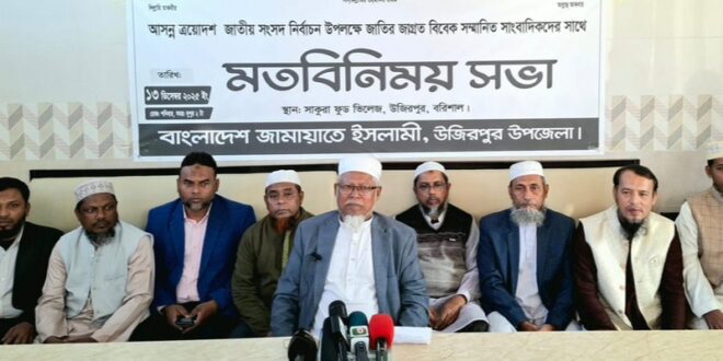 শনিবার (১৩ ডিসেম্বর) উজিরপুরের একটি অভিজাত রেস্টুরেন্টে আয়োজিত এ সভায় প্রিন্ট ও ইলেকট্রনিক মিডিয়ার সাংবাদিকরা অংশ নেন। মতবিনিময় সভায় আলহাজ মাস্টার আব্দুল মান্নান আরো বলেন, ন্যায় ও ইনসাফভিত্তিক সমাজ প্রতিষ্ঠাই জামায়াতে ইসলামীর রাজনীতির মূল লক্ষ্য। তিনি বলেন, জনগণের ভোটে নির্বাচিত হলে দুর্নীতি, চাঁদাবাজি ও দখলদারিত্বের বিরুদ্ধে কঠোর অবস্থান গ্রহণ করা হবে। তিনি আরও বলেন, শিক্ষা ব্যবস্থার নৈতিক উন্নয়ন, কৃষকের ন্যায্যমূল্য নিশ্চিত, স্বাস্থ্যসেবার মানোন্নয়ন এবং নারী ও সংখ্যালঘু জনগোষ্ঠীর নিরাপত্তা নিশ্চিত করতে কার্যকর পদক্ষেপ নেওয়া হবে।