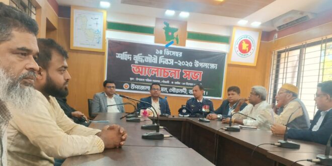 মহান মুক্তিযুদ্ধের ইতিহাসে এক বেদনাবিধুর ও গৌরবোজ্জ্বল অধ্যায় শহীদ বুদ্ধিজীবী দিবস উপলক্ষে বরিশালের গৌরনদীতে গভীর শ্রদ্ধা ও মর্যাদার সঙ্গে আলোচনা সভা অনুষ্ঠিত হয়েছে।