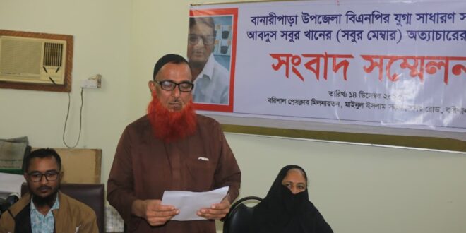 লিখিত বক্তব্যে বলা হয়, ভুক্তভোগী পরিবার দীর্ঘদিন ধরে বিএনপির সমর্থক এবং গণতন্ত্র ও ন্যায়বিচারের আন্দোলনে সক্রিয়ভাবে অংশগ্রহণ করে আসছে। তবে ২০২৪ সালের গণঅভ্যুত্থানের পর থেকে বানারীপাড়া উপজেলার সন্ধ্যা নদীর পশ্চিম পাড়ের পাঁচ ইউনিয়নের মানুষ শান্তিতে বসবাস করতে পারছে না।