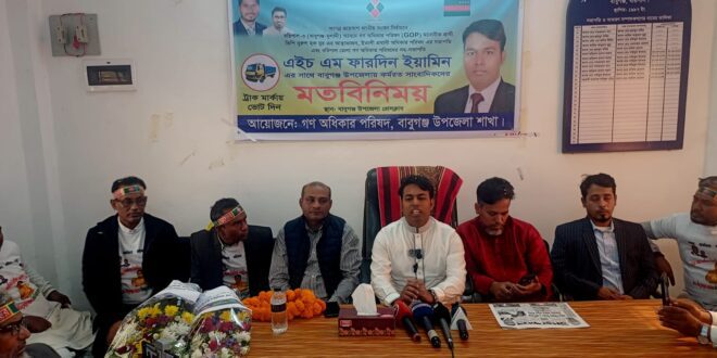 বাবুগঞ্জ উপজেলা গনঅধিকার পরিষদের সভাপতি সিরাজুল ইসলামের সভাপতিত্বে ও বাবুগঞ্জ উপজেলা প্রেসক্লাবের যুগ্ম সাধারণ সম্পাদক আব্দুল্লাহ আল মামুনের সঞ্চালনায় মতবিনিময় সভায় উপস্থিত ছিলেন বরিশাল জেলা শাখার গণঅধিকার পরিষদ এর সভাপতি মোঃ শামিম রেজা, সাধারণ সম্পাদক এইচএম হাসান, সাংগঠনিক সম্পাদক নুরুল আমিন, জেলা যুব অধিকারের সাধারণ সম্পাদক রাজন মৃধা, সিনিয়র যুগ্ম সাধারণ সম্পাদক আশিক হাওলাদার, বাবুগঞ্জ উপজেলা শাখার ভারপ্রাপ্ত সভাপতি প্রফেসর সিরাজুল ইসলাম, সাধারণ সম্পাদক মাসুম হাওলাদার, সাংগঠনিক সম্পাদক নুরুল আমিন, সাংগঠনিক সম্পাদক আল আমিন হাওলাদার, উপজেলা যুব অধিকার পরিষদের ভারপ্রাপ্ত সভাপতি বিএম ইব্রাহিম ,সাধারণ সম্পাদক জাহিদুল ইসলাম রিয়াদ, সাংগঠনিক সম্পাদক আল-আমিনসহ বিভিন্ন ইউনিয়নের নেতৃবৃন্দরা।