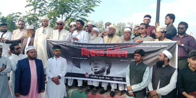ইনকিলাব মঞ্চের মুখপাত্র, ঢাকা–৮ আসনের স্বতন্ত্র প্রার্থী এবং ভারতের আধিপত্যবাদ বিরোধী বিপ্লবী জুলাই যোদ্ধা শরীফ ওসমান বিন হাদীকে সন্ত্রাসীদের গুলিতে হত্যার প্রতিবাদে পটুয়াখালীতে সর্বদলীয় বিক্ষোভ মিছিল ও সমাবেশ অনুষ্ঠিত হয়েছে।
